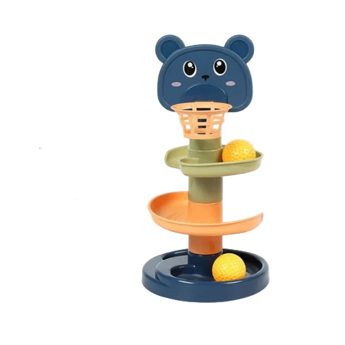 מגדל מסלולים צבעוני שבו הכדור מתגלגל בקומה אחר קומה, מסובב את המדחפים ויוצר חוויה מהנה שמושכת את הילד למשחק חוזר.